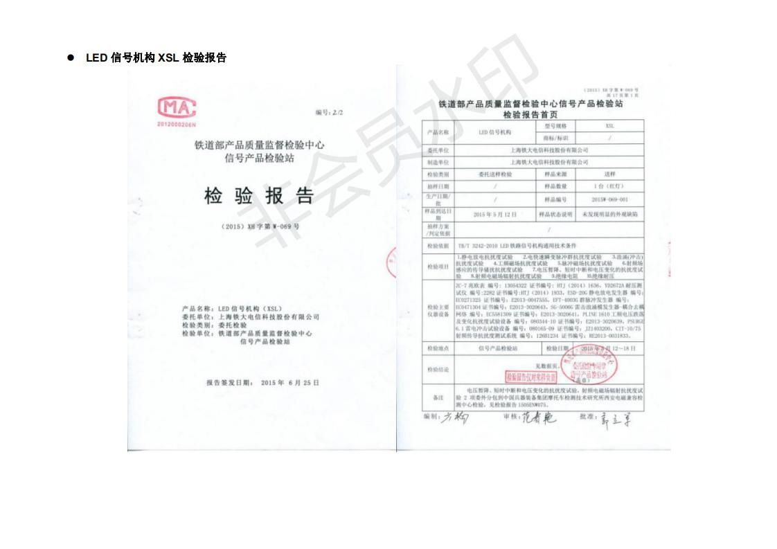XSL 型 LED 信号机构防雷检验报告